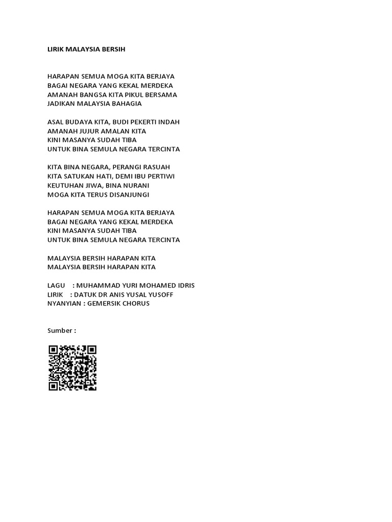 DEMO VIDEOS Get to know everything Vimeo can do for your business. Lirik lagu Malaysia Bersih - Lagu Patriotik Malaysia Harapan semua Moga kita berjayaBagai negaraYang kekal merdekaAmanah bangsaKita pikul bersama. Malaysia Bersih Harapan semua.